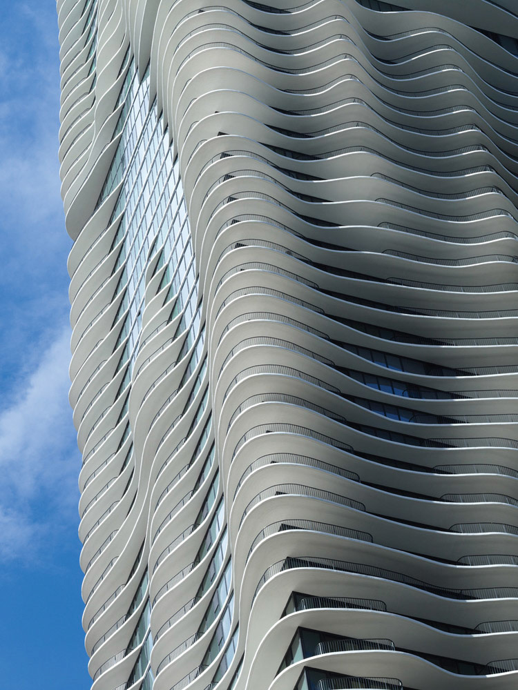 Chicago, Illinois, United States - May 03, 2011: Detail of the modern architecture of Aqua Building at downtown Chicago.